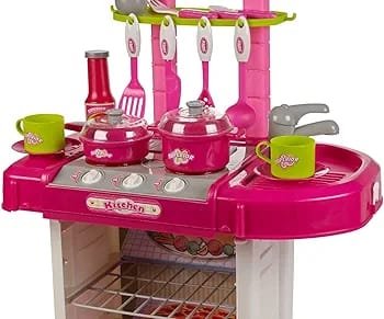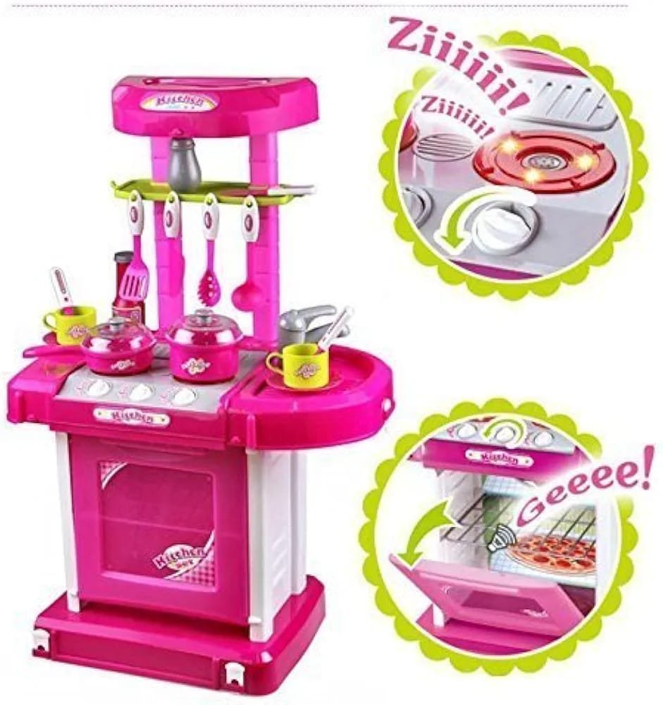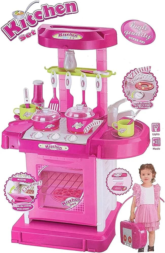 Kitchen Set for Kids Girls Big Cooking Set Light and Sound Pretend Play Toy Battery Operated with Accessories